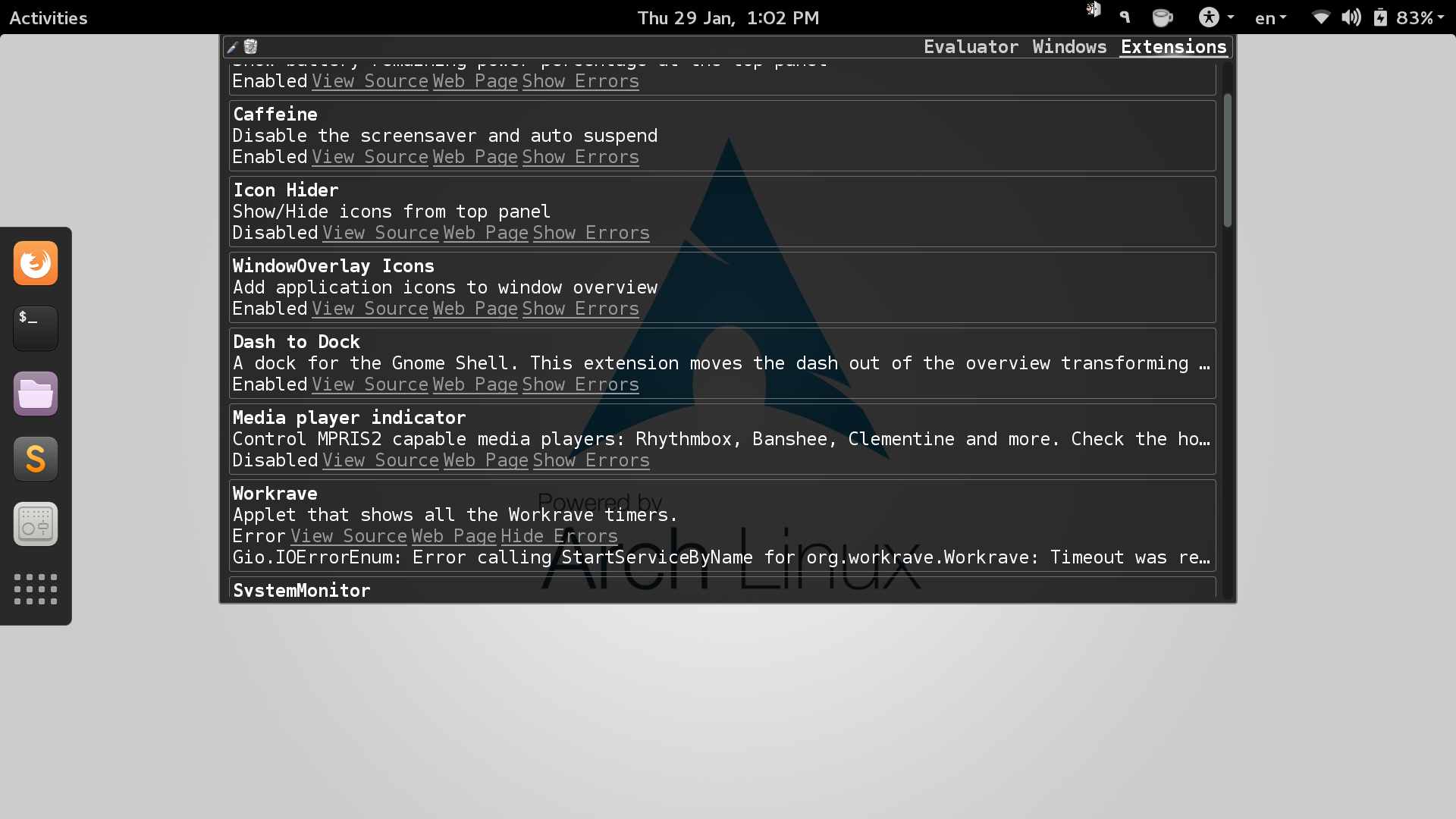 Bug 1192 - The gnome-shell extension gives an error.