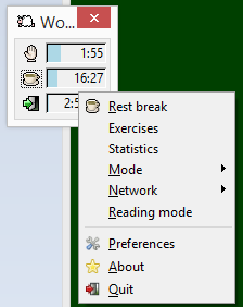 (In reply to aimeelouh from comment #0) Just to be sure: You are saying that you cannot do one of the following: * Right click on the workrave main window, and select "preferences" from the context menu * Right click on the sheep icon in the system tray, and select "preferences" from the context menu * Right click on the workrave toolbar (assuming you have it enabled), and select "preferences" from the context menu