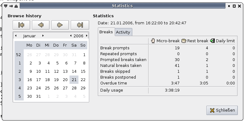 | 48 | statistics dialo: title and content: english, button german, date in german format![]() | |||