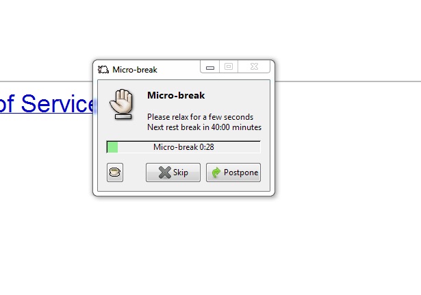 Hi, The whole thing freezes. - When a short break comes up and it starts counting the time - it freezes on 28 seconds (my break is set to be 30sec). I have to kill the program in order to close the break timer window. - If I skip it or postpone it, when it comes up again the same thing happens. - The long breaks freeze on 9:47 seconds. - Also workrave is not visible in the taskbar when active. - I have uninstalled it and installed it again a few times. Please help as I really want to use it. Mariya